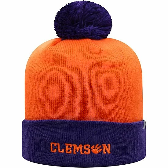 Adding this Clemson Tigers Core 2-Tone cuffed knit hat with pom to your cold-weather ensemble will be an easy choice to make. Featuring a sleek design and bold team colors, this Top of the World cap also includes two embroidered Clemson Tigers graphics on the cuff.