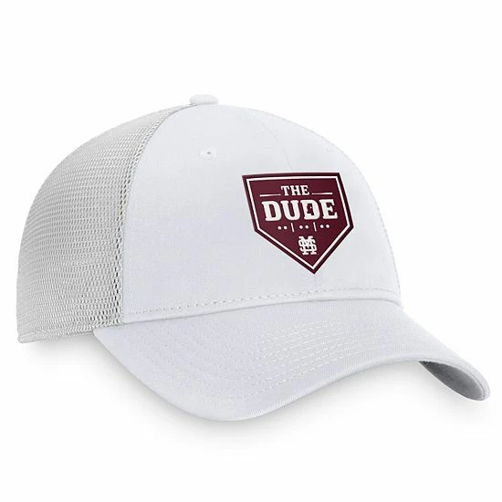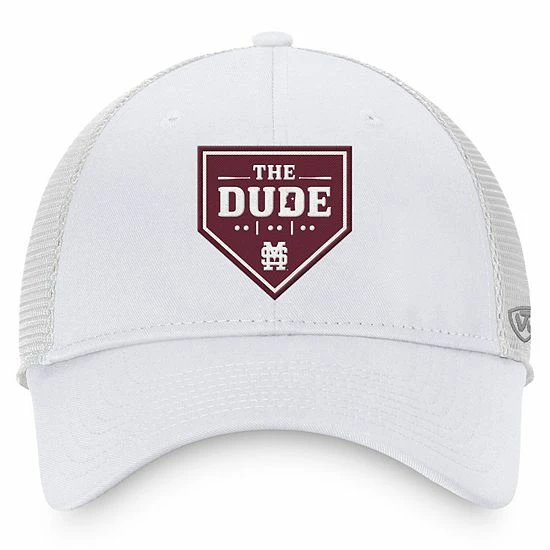 Honor the legacy of Mississippi State baseball’s Dudy Noble Field with this The Dude Home Plate snapback trucker hat from Top of the World. The front two panels feature an embroidered applique logo over soft cotton material to create a sharp look. Thanks to the surrounding polyester mesh and snapback closure, the cap also has a light, personalized feel so you can cheer on the Mississippi State Bulldogs baseball team with ease at The Dude.
