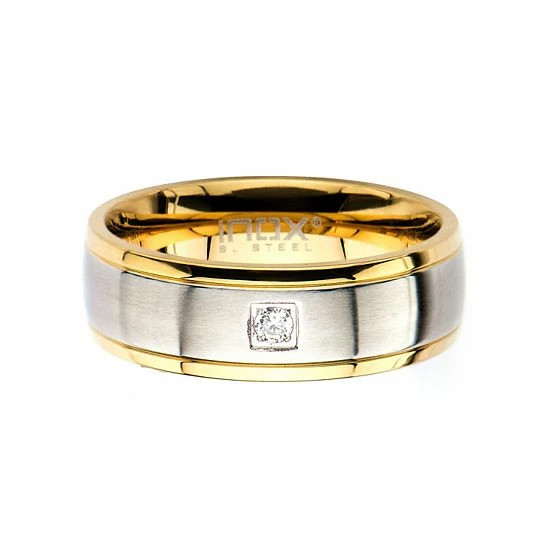 Crafted from stainless steel, and featuring a sparkling cubic zirconia accent, this men’s two-tone ring offers a sophisticated mix of classic and contemporary styling.