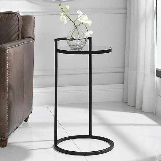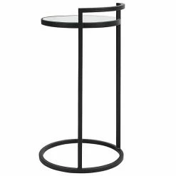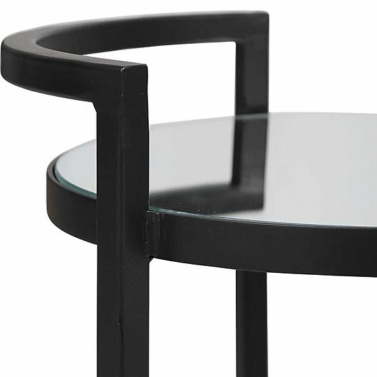 Create an eye-catching focal point in any room with this mirror-top iron accent table.