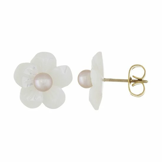 A floral shape with a cultured, freshwater mother-of-pearl center accent add a fun touch to your look.