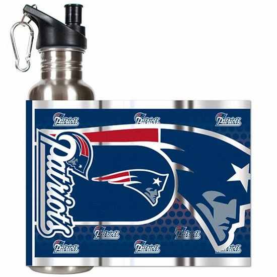 This New England Patriots stainless steel water bottle quenches your thirst at home or away. Team logo graphics offer official style for the hard-core fan.