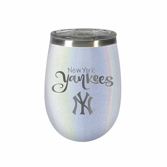 This New York Yankees wine tumbler is the perfect sidekick for tailgate parties. Features an opal finish etched with a holographic undertone.