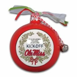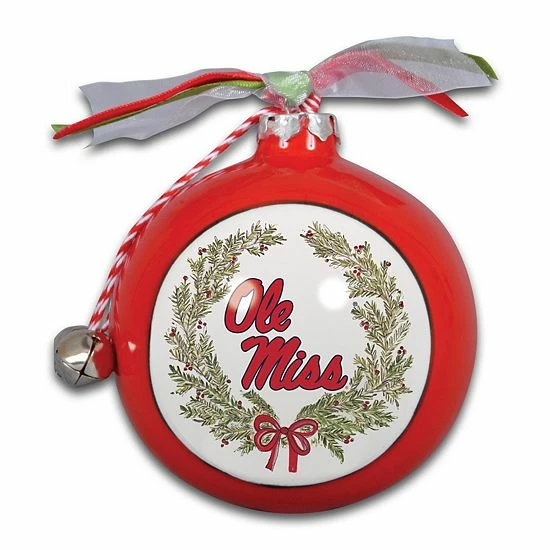 Combine your holiday spirit and your love of the Ole Miss Rebels with this Wreath Kickoff ornament. The beautiful painted graphics feature your team’s logo surrounded by a festive wreath. The ribbon and bell embellishments add a touch of style to this ready-to-hang ornament.