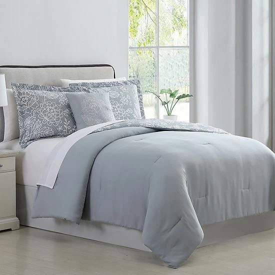 Complement the look of your bedroom decor and add beautiful style with this Olivia Printed Reversible bedding set. In gray.