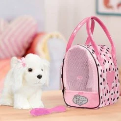 - Includes: 8-inch stuffed animal puppy, a comb and a carrying bag for the dog.