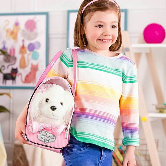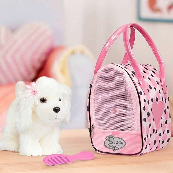 - Pucci Pups: adorable plush Maltese puppy with pink purse covered in polka dots!