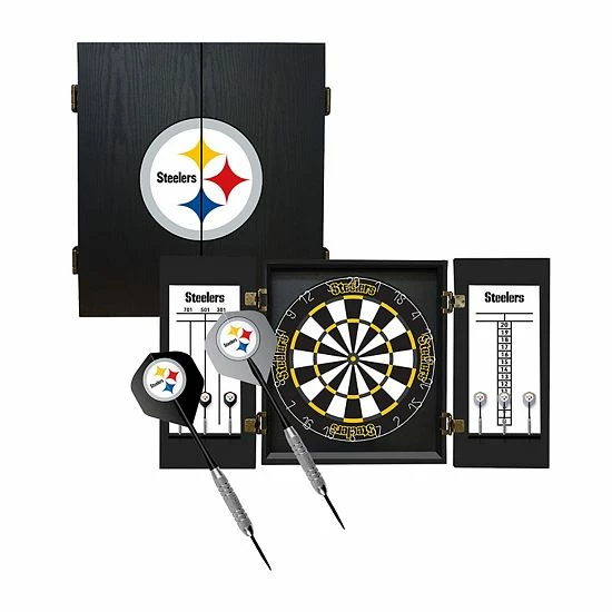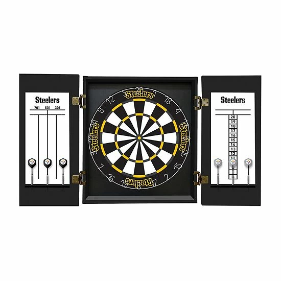 Achieve high-scoring fun with this Pittsburgh Steelers dartboard set.