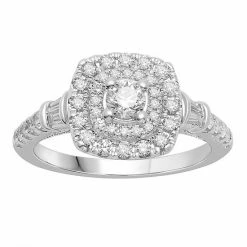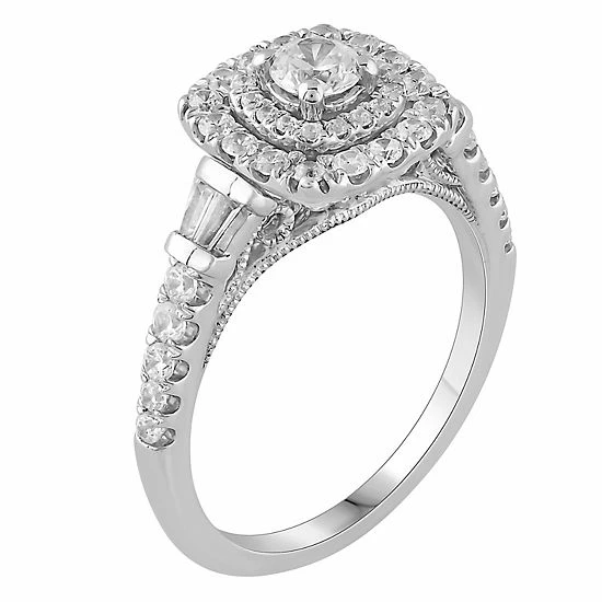 Featuring a captivating diamond center stone set atop tiers of diamond accents, this platinum halo engagement ring is a lovely symbol of your commitment.