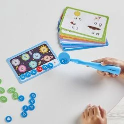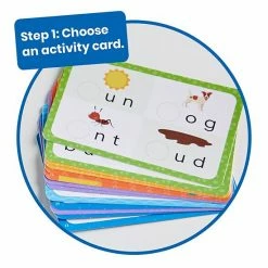 - Includes: 52 lowercase alphabet chips, 24 oval two-letter sound chips, 3 round by-heart chips, & 14 double sided activities cards