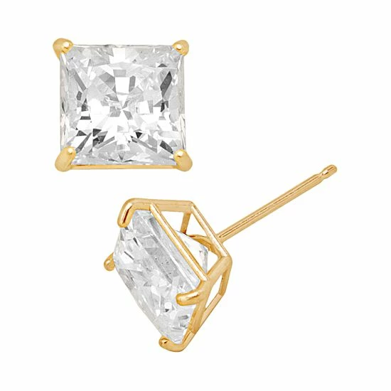 You’ll take fashion to a new level with these 10k gold stud earrings. Princess-cut cubic zirconia stones dazzle in the light. Pair these earrings with a gold bracelet, and your style is complete.