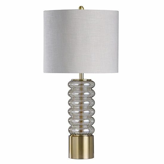 Instantly refresh your space with this Round Clear Glass Table Lamp with Polished Steel Base.