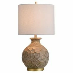 Instantly refresh your space with this Round Transitional Moulded Table Lamp with Gold Body Brass Base.
