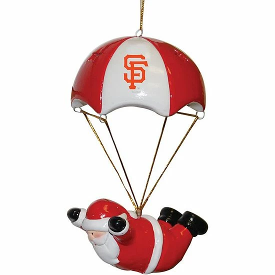 Bring a whimsical feel to your collection of San Francisco Giants holiday items by hanging this Skydiving Santa ornament. It features the instantly recognizable San Francisco Giants logo on the parachute adorned with star cutouts. Santa will look like he’s flying down from the top of your tree!