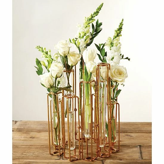 Add something exciting to your home with this Set Of 10 Hinged Flower Vases Gold.