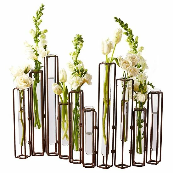Add some beauty to your home with this Set Of 10 Hinged Flower Vases Rust.