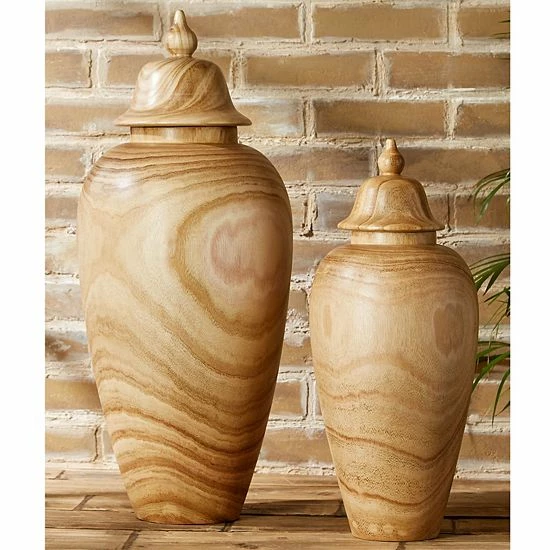 Upgrade your home decor with this Set of 2 Covered Temple Jars.