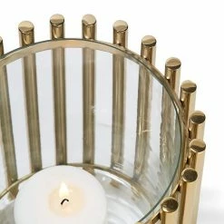 - Sleek stainless steel rods with a golden glow ring glass containers and softly bounce around light from flickering flames