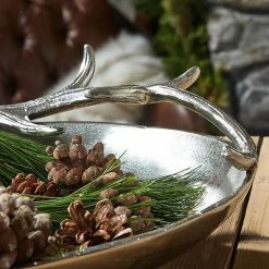 - The unique designs are made from aluminum with a bright silver finish that gives any space a radiant shimmer