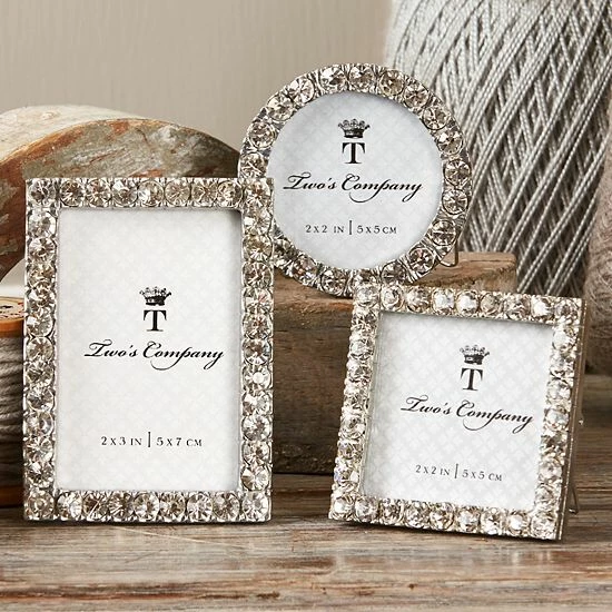 Dazzling jewels border this eye-catching set of 3 photo frames perfect for home use or for special occasions!
