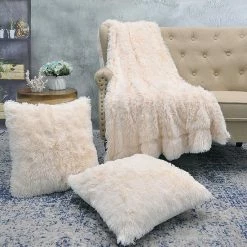 Create a relaxing and cozy atmosphere with this Shaggy Faux Fur Throw with 2 Pillow Shell Set.