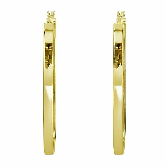 Enhance your wardrobe with the contemporary style of these Silver Classics 18k gold-over-silver rectangle hoop earrings.
