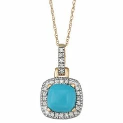 A simulated turquoise gemstone surrounded by shimmering diamonds gives this halo pendant unsurpassed beauty.