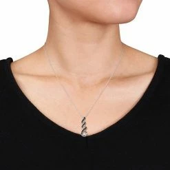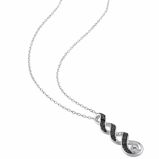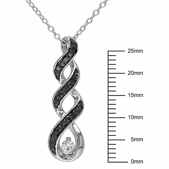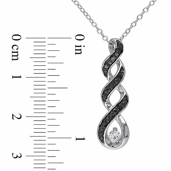 Add captivating beauty to your jewelry collection with this sterling silver necklace. A twist design adorned in black diamonds and a lab-created white sapphire stone makes it a stunning choice. Comes in a gift box.