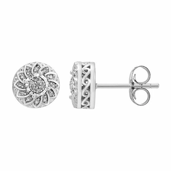 Add a sparkling touch to your ensemble with these sterling silver diamond flower stud earrings.