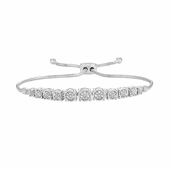 Radiant diamonds, arranged in a graduated motif, adorn this sterling silver bolo bracelet, illuminating your fantastic sense of style.