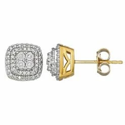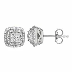 Clusters of miracle-set diamonds add a touch of scintillation to these sterling silver halo stud earrings.