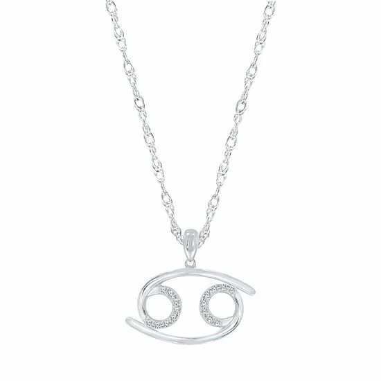 This beautiful sterling silver 1/10 carat diamond pave Cancer zodiac pendant necklace is sure to make any look dazzle.