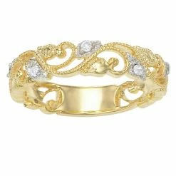 Featuring an ornate design and glistening round-cut diamonds, this sterling silver ring offers a luxurious look.