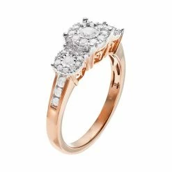 She’s sure to admire the captivating beauty of this sterling silver engagement ring. Featuring diamonds situated in a three-stone cluster motif, this engagement ring is a wondrous symbol of your love.