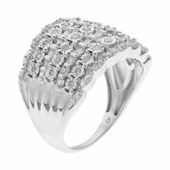 Adorned with alternating rows of miracle-set diamonds and diamond baguettes, this sterling silver multi-row ring makes a scintillating addition to your look.