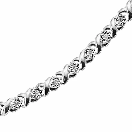 Simply gorgeous. Round-cut diamonds and X links make this sterling silver bracelet shimmer with splendor.