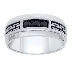 Accented with a chain-link pattern and a trio of black diamonds, this sterling silver ring adds a contemporary touch to your wardrobe.