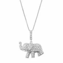 A diamond-studded elephant pendant delivers tremendous charm to this sterling silver necklace’s overall design.