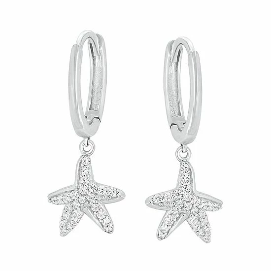 Add a fun touch to your casual attire with these sterling silver diamond starfish drop earrings.