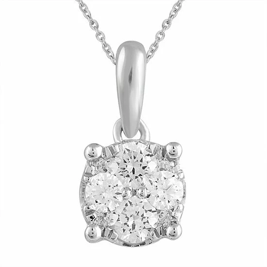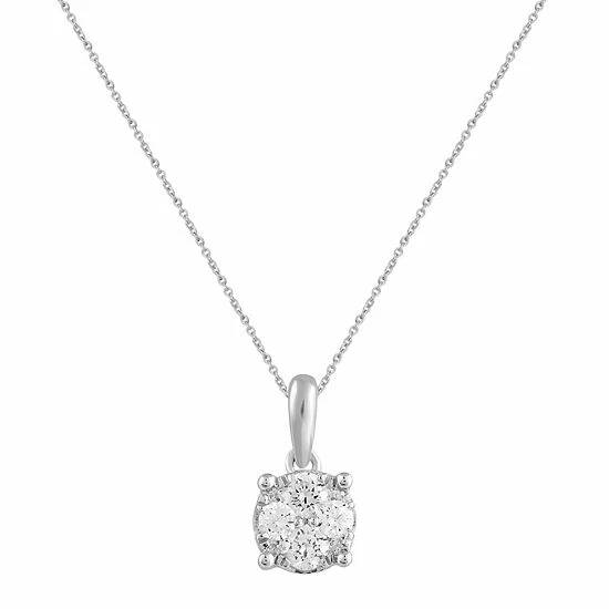 This gorgeous sterling silver diamond pendant set is the perfect way to finish any outfit.