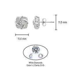 Featuring swirls of sparkling diamonds in a lovely knot motif, these sterling silver earrings are a distinctively beautiful accent to your wardrobe.