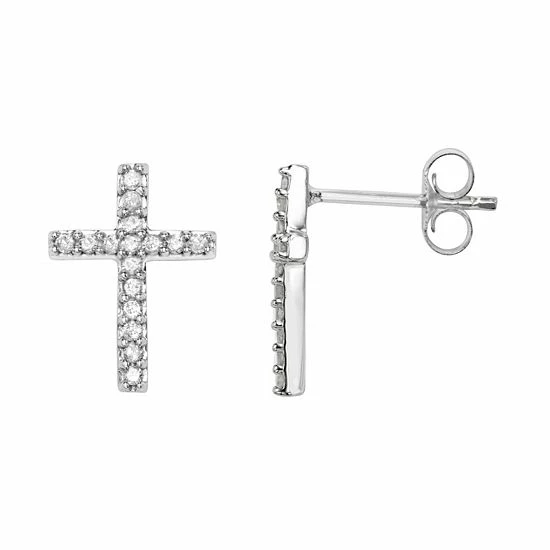 Accentuated with round-cut diamonds, these sterling silver cross stud earrings are sure to inspire those around you.