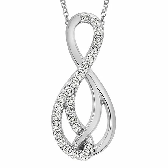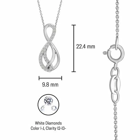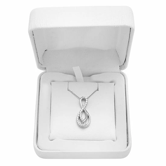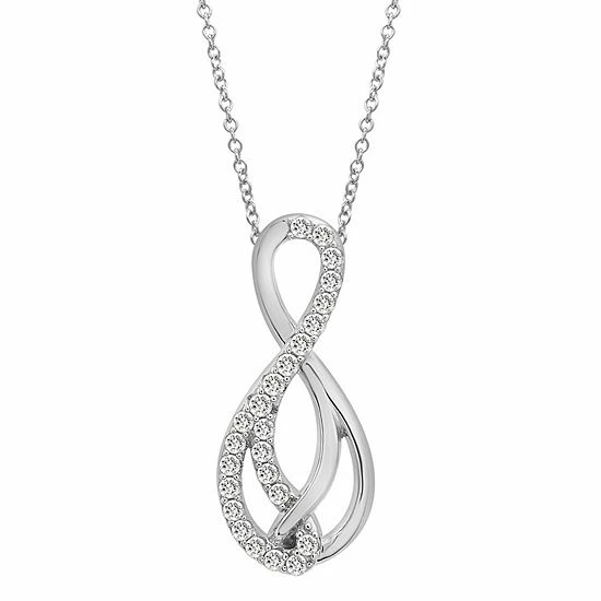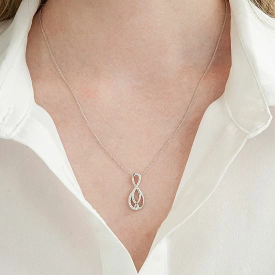 Decorated with round-cut diamond accents, this sterling silver infinity pendant will beautifully elevate your look.