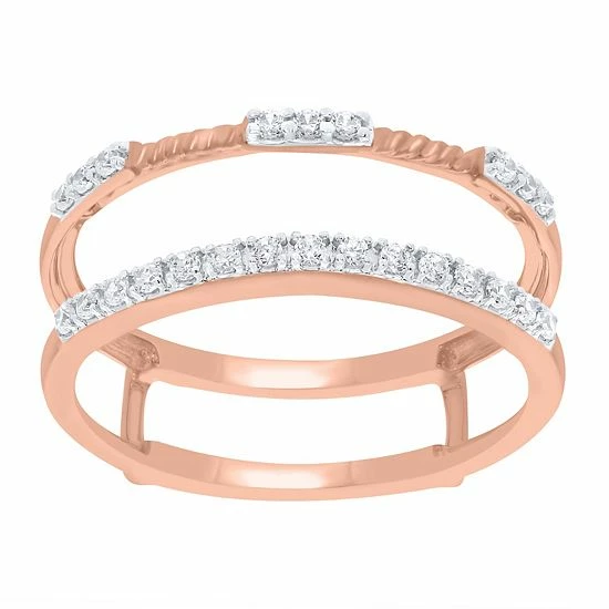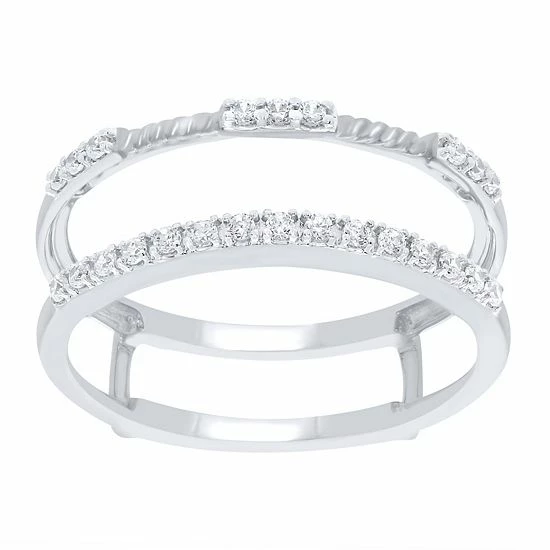 Lined with dazzling round-cut diamonds, this sterling silver enhancer ring beautifully complements and protects your favorite ring.