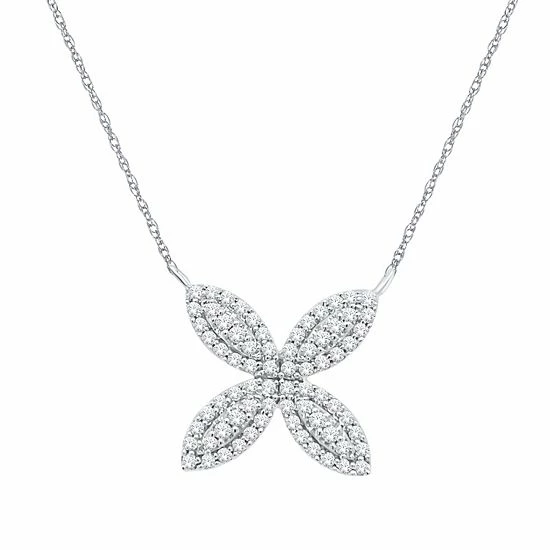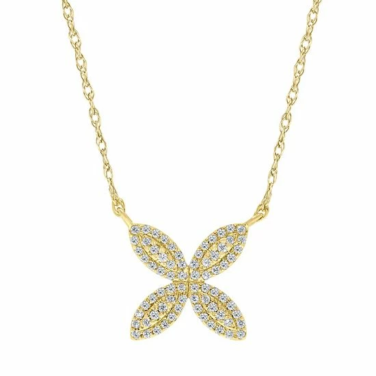 Add some botanical sparkle to your jewelry collection with this diamond-studded flower necklace.