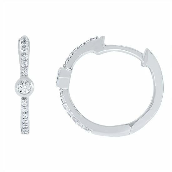 Your style will shine with these sterling silver 1/6 carat diamond bezel hoop earrings.
