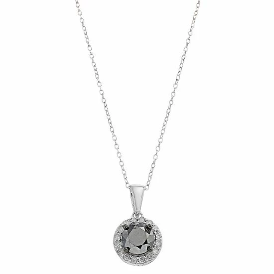 Featuring a black diamond center stone accented by white diamonds, this necklace is an eye-catching accessory that complements any outfit.