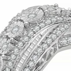 Decorated with shimmering, round-cut diamonds this sterling silver ring is a beautiful complement to your wardrobe.