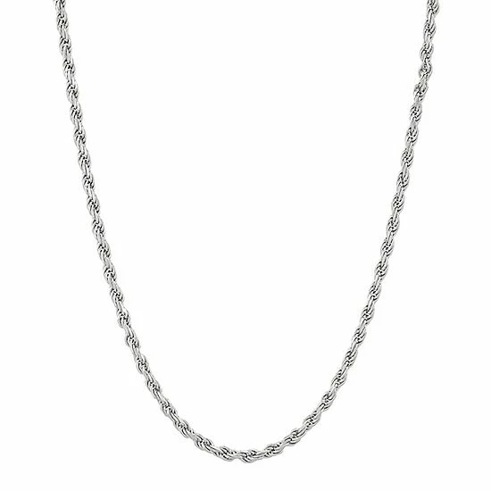 This polished sterling silver rope chain necklace is a classic piece that will be at home in any jewelry collection.
