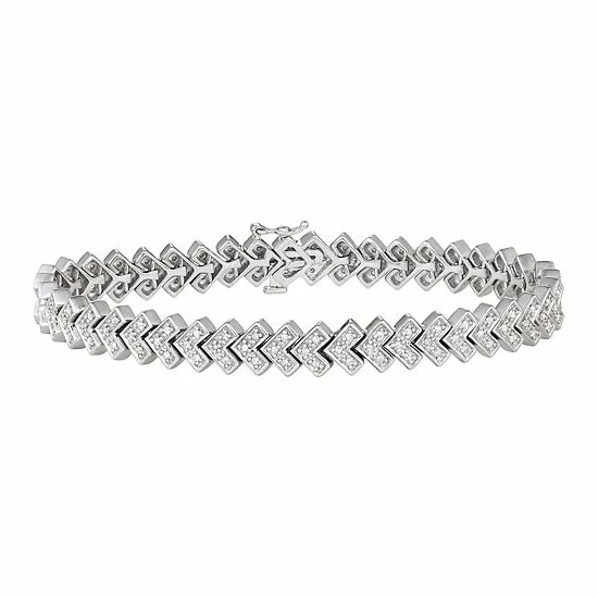 Featuring chevron links crafted from sterling silver, this diamond tennis bracelet completes your look in a distinctively stylish way.